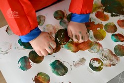 Tako prosto ustvarjanje in raziskovanje, mešanje barv in packanje otroka veseli in ob tem neizmerno uživa. Skupaj z otrokom izdelamo pečatnike iz krompirja in mu pokažemo, kako z njimi tiskamo. Lahko tiskate na nakupovalne papirnate vrečke. Tiskanje vzpodbuja razporejanje likov v različne vzorce, opazovanje dogajanja, predvidevanje, iskanje vzrokov in posledic ob dejstvu, da odtisnemo predmet.